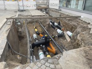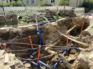 Ob Trink-, Regen- oder Schmutzwasser, in allen Bereichen sind wir zu Hause. Egal, ob es um die größeren Leitungen von Ver- und Entsorgern geht oder um private Hausanschlüsse, wir können auf jahrzehntelange Erfahrung in der Verlegung zurückblicken. Ebenso bauen wir kontinuierlich Fernwärme- und Gasleitungen und bereiten mit unseren Tiefbauarbeiten die Verlegung von Stromkabeln vor.